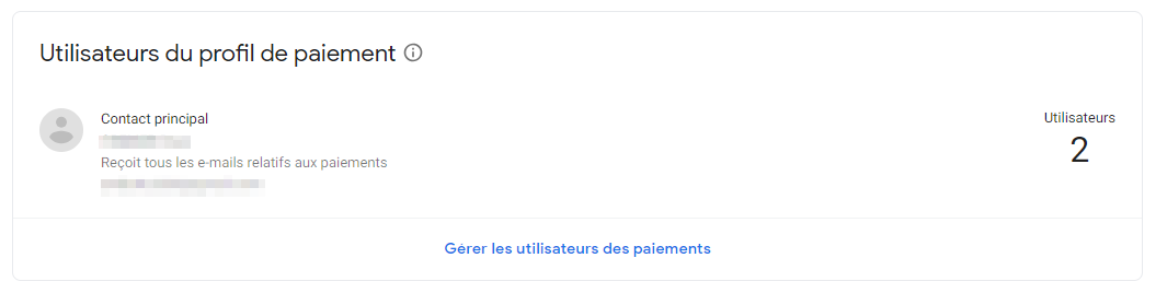 Plus bas sur cette même page, dans le bloc Utilisateurs du profil de paiement cliquez sur Gérer les utilisateurs des paiements.